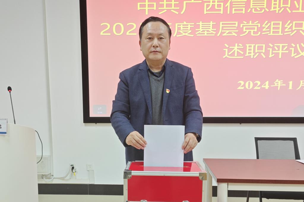 党委组织部 关振华报道 1月12日下午,广西信息职业技术学院在3号实训楼103教室召开2023年度基层党组织书记抓基层党建工作述职评议考核会,学校领导、各党务部门负责人、各党支部书记、部分支委与党员代表共37人参加会议。会议由副院长李国助主持。