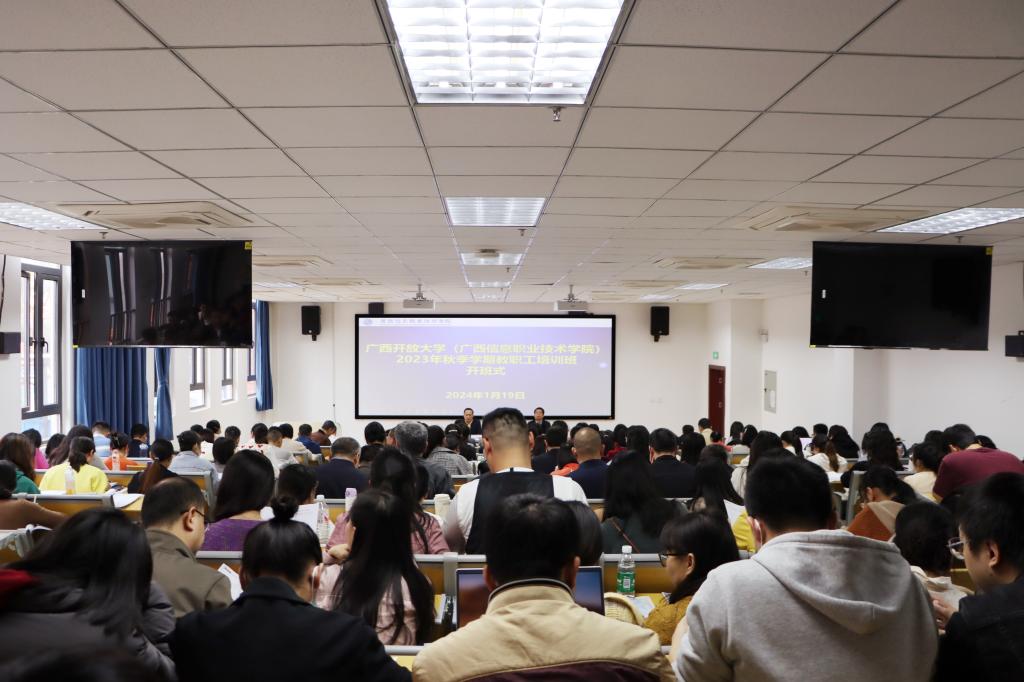 人事处 关振华报道 为进一步提升广大教师的思想政治素质和教育教学能力,促进教职工成长与发展,2024年1月19日至1月22日,学校在五象校区3号实训楼103教室举办2023年秋季学期教职工培训。学校领导班子出席培训会,广西开放大学专任教师、行政兼课教师,广西信息职业技术学院全体教职工以及学校近2年新进教职工共200余人参加培训。
