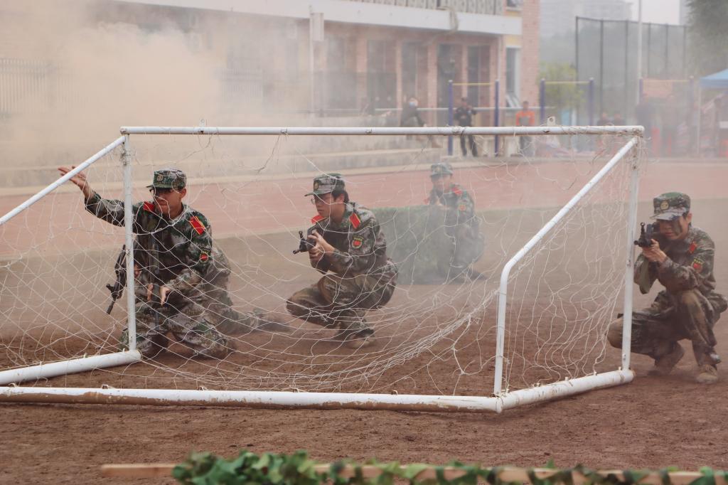上午9时,伴随着《中华人民共和国国歌》的奏响,全场齐声高唱国歌,国旗缓缓升起,军训总结大会正式拉开帷幕。