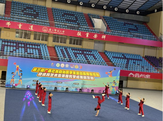 公共教学部 陈采铃 潘长嫔 报道 6日14日至16日,第三届广西学生运动操舞锦标赛暨体育艺术类课程教学成果展示赛在广西师范大学(雁山校区)综合体育馆举行,来自广西12个地市的近1600余名学生参加比赛,我校学子喜获高职高专组街舞齐舞、街舞啦啦操集体项目冠军以及霹雳舞个人项目总冠军。