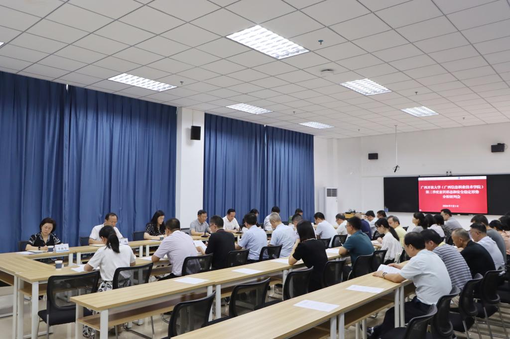 广西开放大学党校办、党委宣传部、后勤基建与保卫处、教技中心、文理学院负责人,文理学院全体思政课教师,后勤基建与保卫处分管安保工作副处长及全体安保工作人员,广西信息职业技术学院各党支部书记、部门负责人,马克思主义学院全体思政课教师,后勤保卫处全体工作人员参加会议。