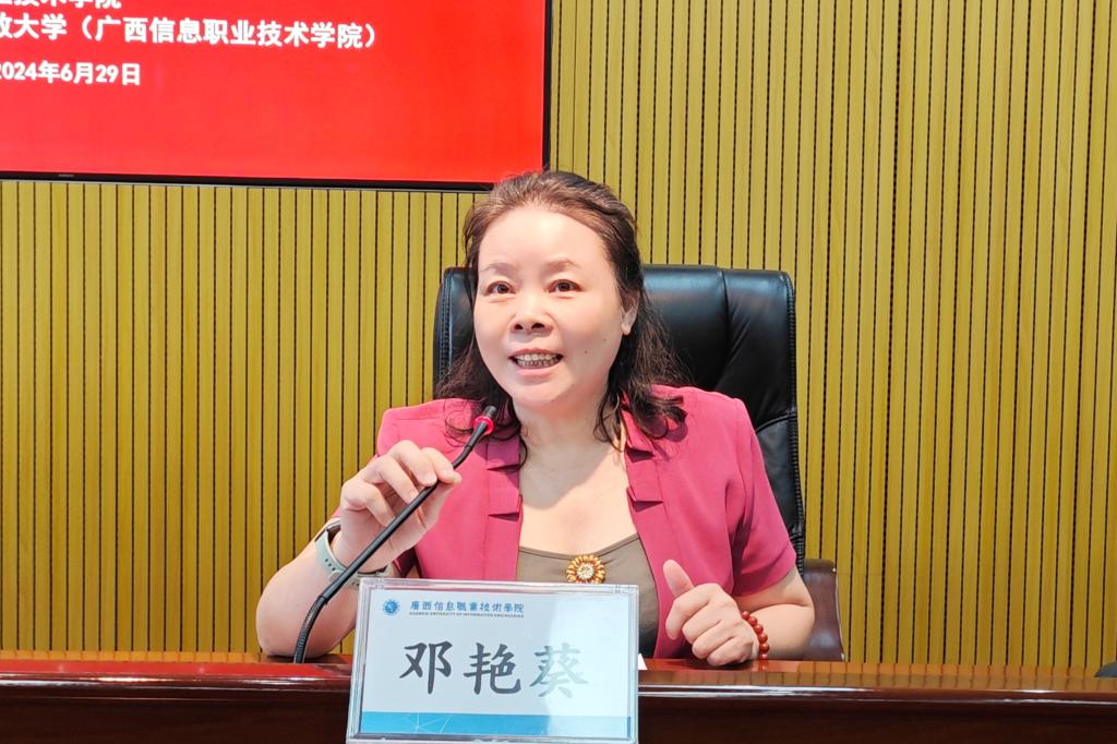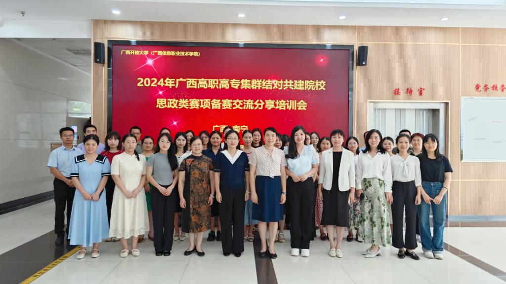 马克思主义学院 陆文妮报道 6月29日,由广西职业技术学院主办,我校承办的2024年广西高职高专集群结对共建院校思政类赛项备赛交流分享培训会顺利召开。马克思主义学院名誉院长邓艳葵主持开班仪式。