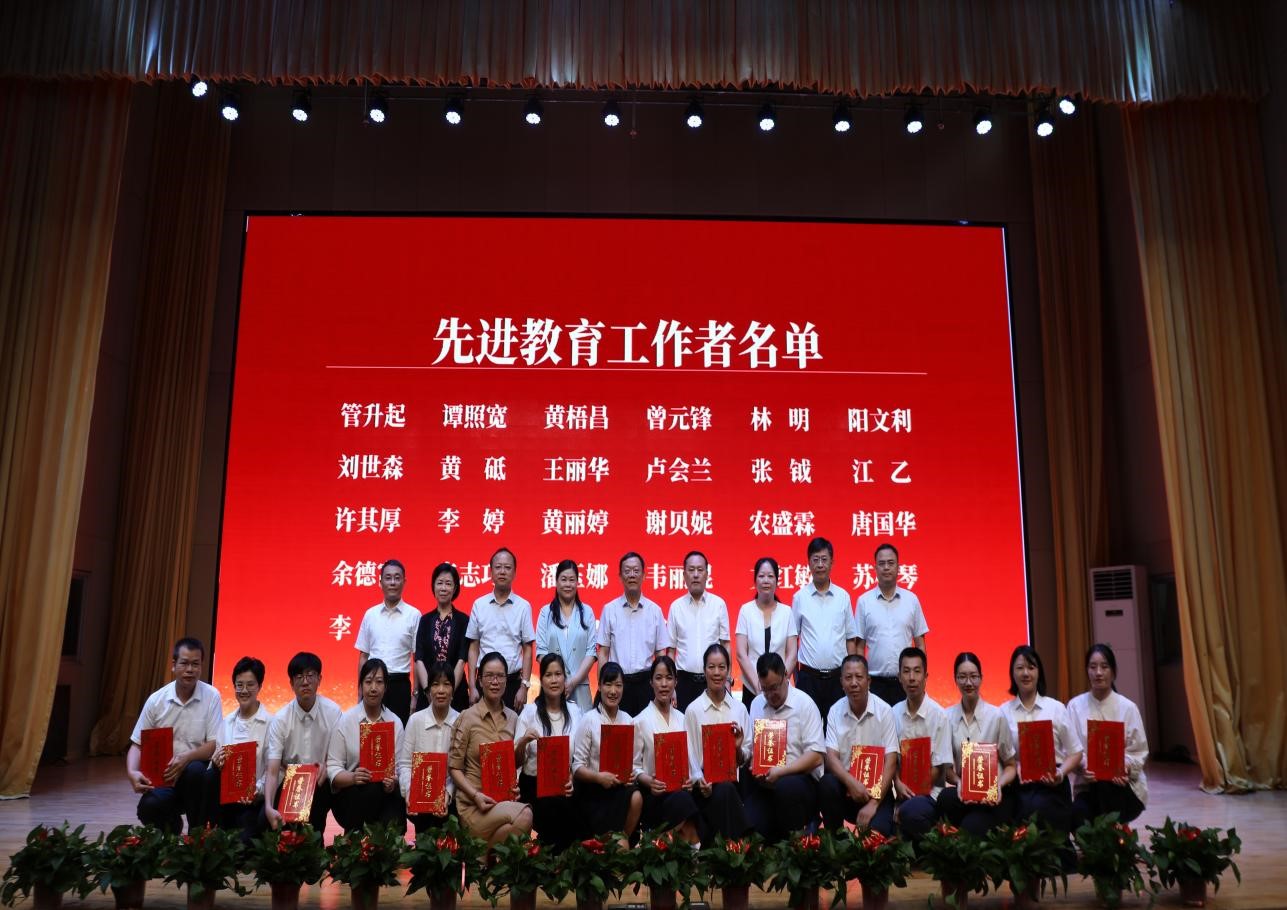 学校党委书记代表学校党委、行政向辛勤耕耘、无私奉献在开放教育、继续教育、高职教育、社区教育、老年教育、社会培训等各条教育战线和各个岗位上的广大教师和教育工作者们致以节日的问候和崇高的敬意。会议指出,为加快推进特色鲜明的区域性高水平新型大学建设,广西开放大学体系全体教职工不懈奋斗,坚持同向发力、同题共答,在把握形势中抢抓机遇,在攻坚克难中砥砺前行,在苦干实干中彰显担当,进一步厘清了“服务全民终身学习”的办学定位,进一步明确了全区办学体系“一盘棋、一家亲”和开大(广信)融合发展的办学思路,推动各项事业发展势头持续向好。