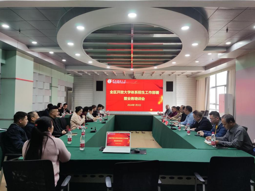 开放教育学院 韦小婵报道 1月3日下午,我校召开全区开放大学体系招生工作部署会。副校长刘绍英出席会议,各市开放大学分管招生工作的校领导、招生办主任,开放教育学院全体人员参加会议。