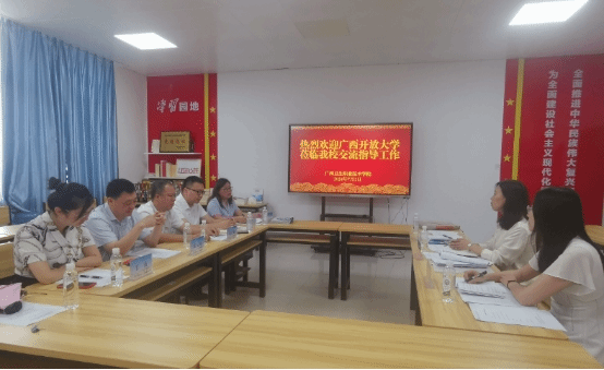 白雪介绍了我校的基本概况、学科发展方向以及健康管理专业建设情况等。两校就招生、师资队伍建设、新开设专业人才培养方案制定、国际交流项目、校企合作及学生就业出口等方面进行了深入交流。调研组一行还参观了广西卫生职业技术学院健康管理、中医康复技术专业实训室。