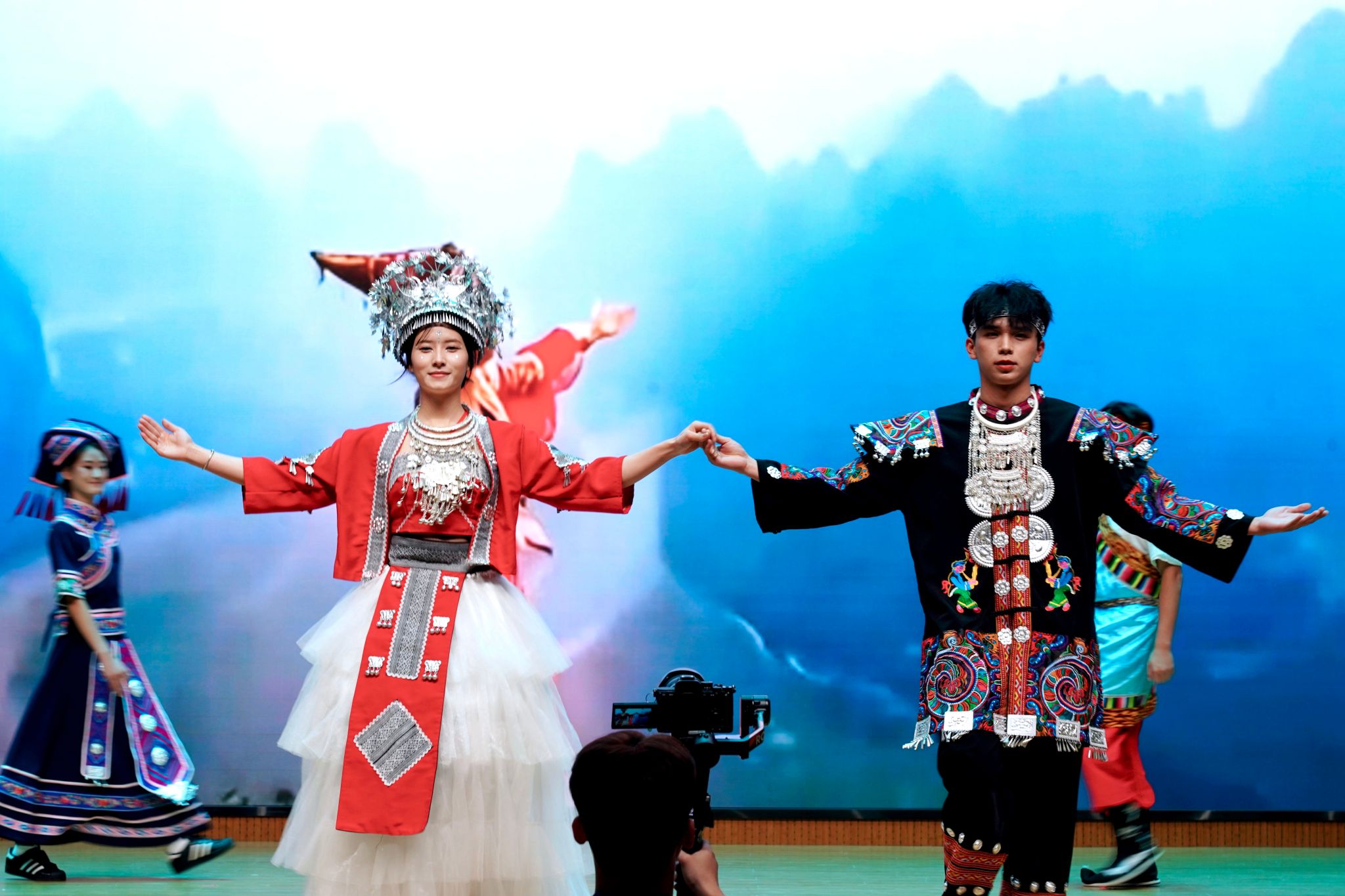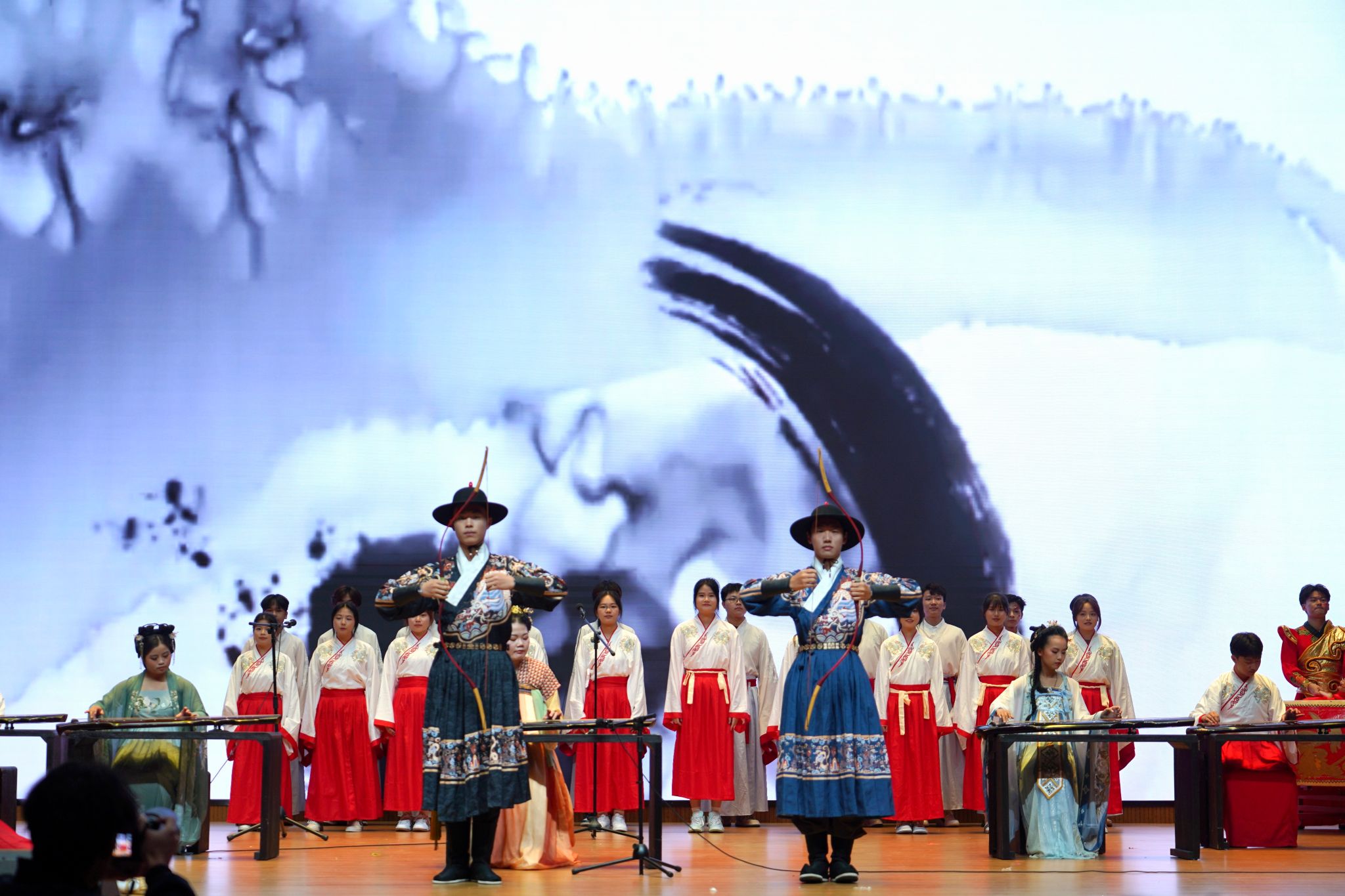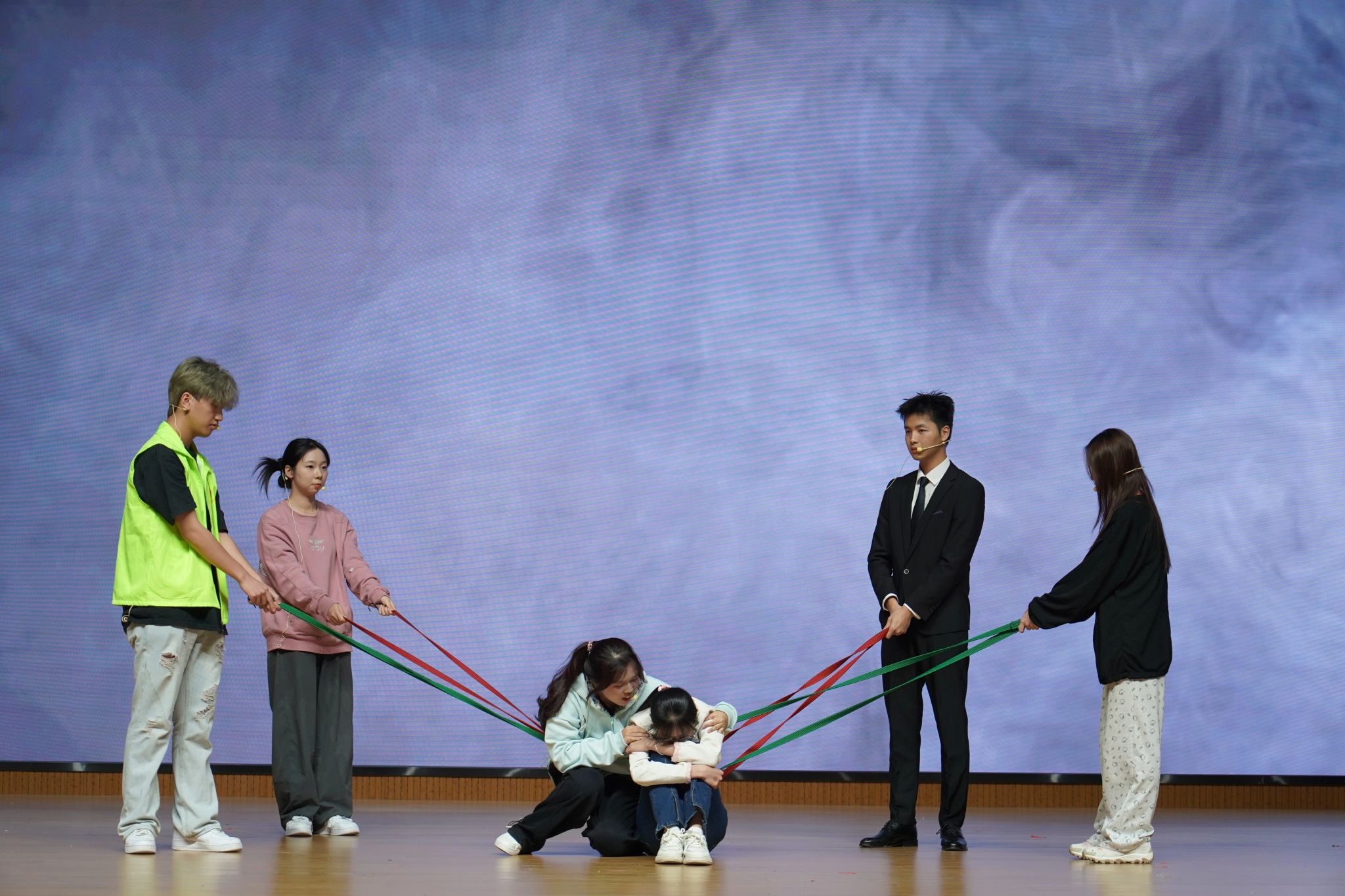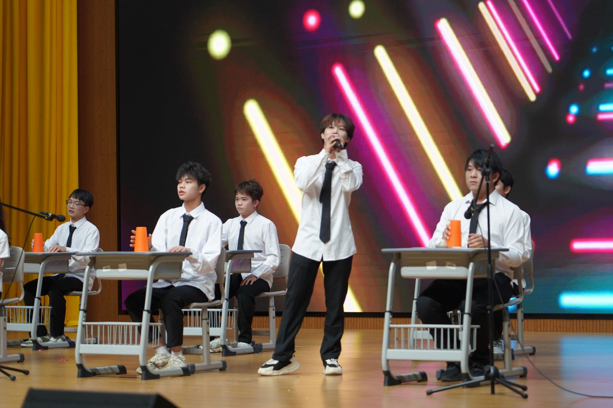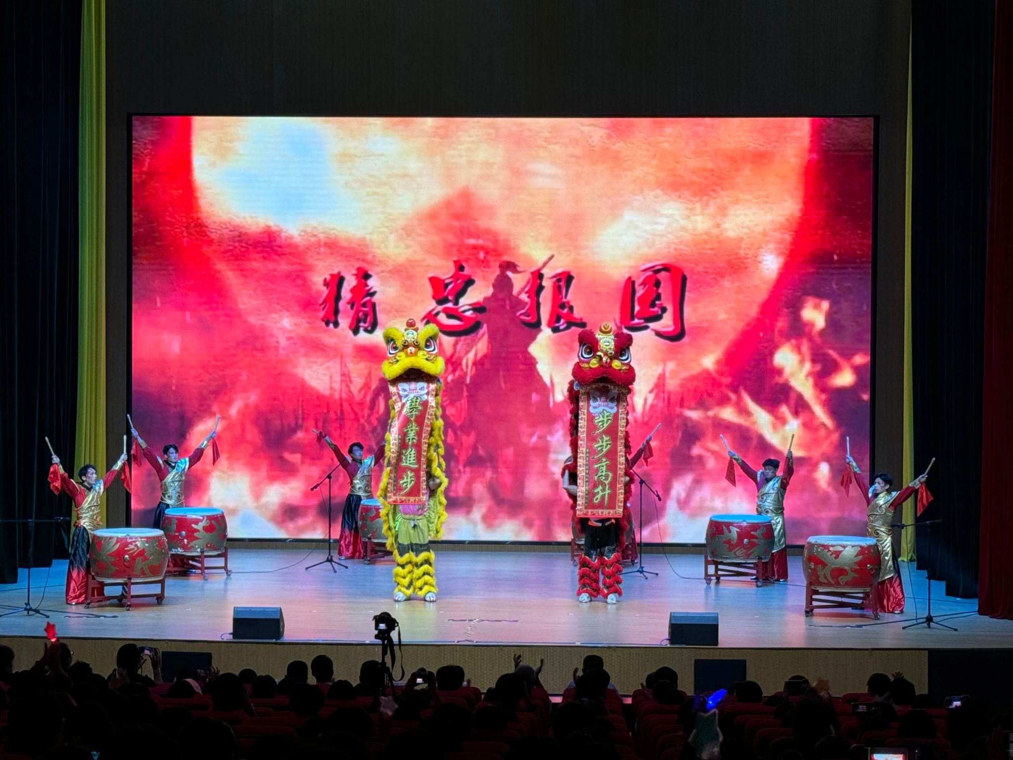 伴随着璀璨的灯光、喜庆的锣鼓,晚会在大鼓和舞狮表演《精忠报国》中拉开序幕。演出共分为“心向璀璨启新程”“青春飞扬展风采”“奋发有为谱华章”三个篇章,涵盖合唱、舞蹈、小品、说唱、影子戏、情景剧等形式多样的节目,台上的演员们用饱满的热情和精彩的表演,感染着在场的观众,现场掌声此起彼伏。