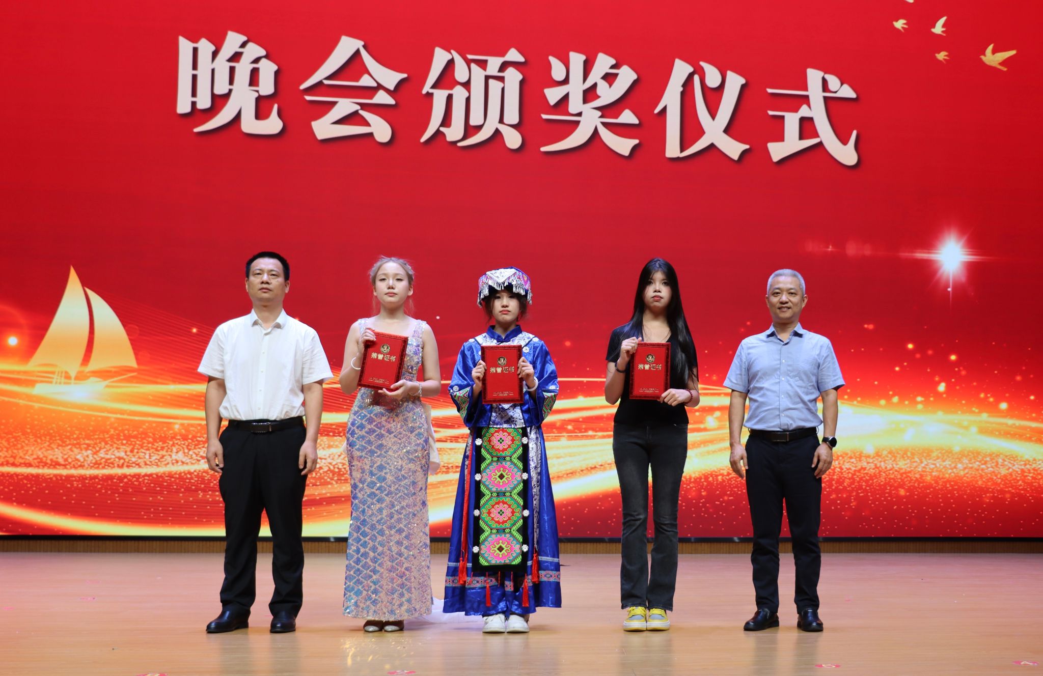 广西信息职业技术学院副院长黄河、李国助为节目三等奖获得者颁奖