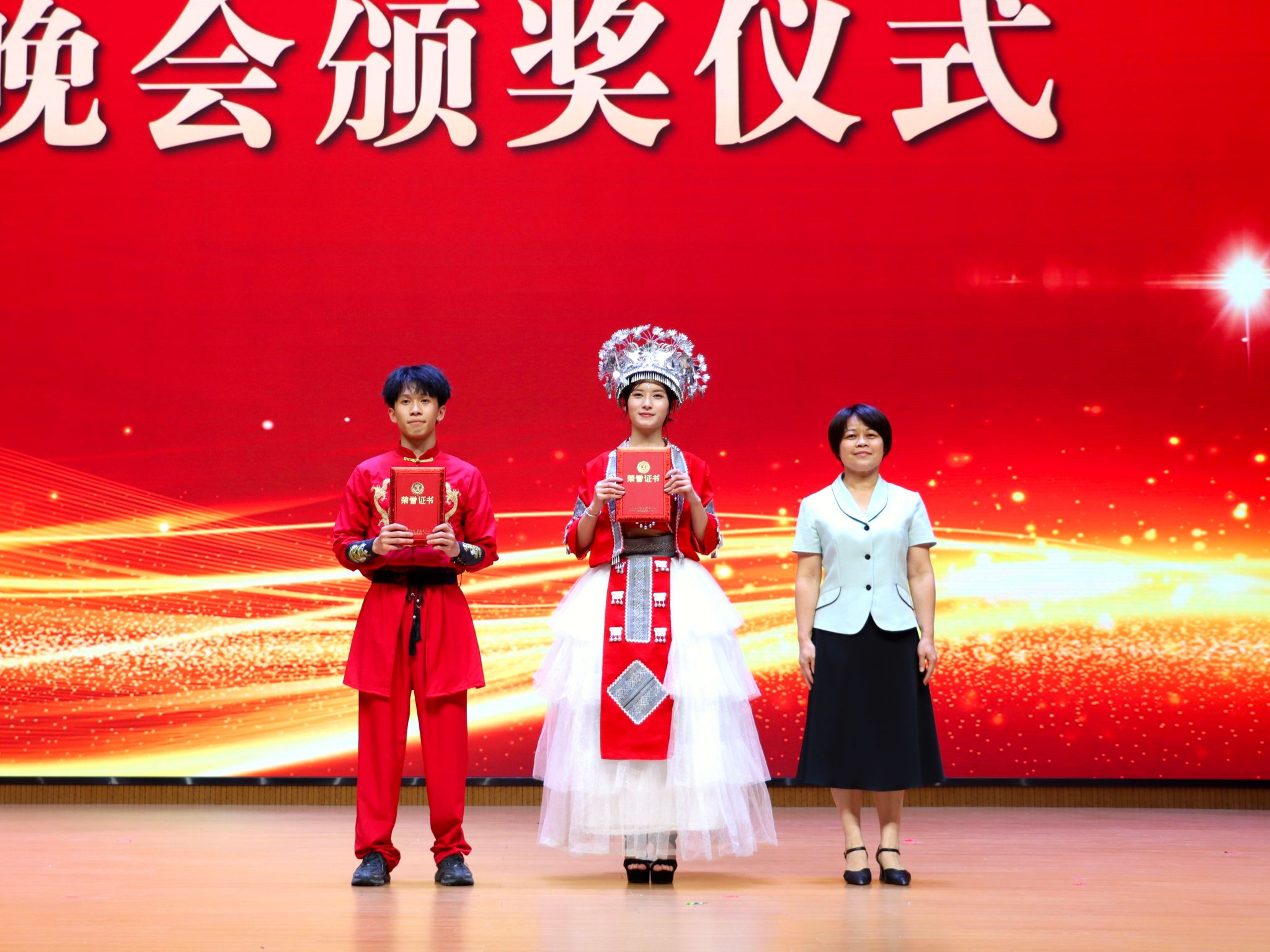 广西开放大学党委副书记龙雪津为节目一等奖获得者颁奖