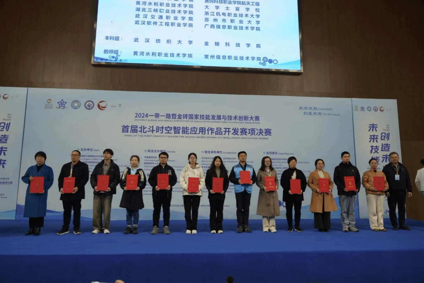 北斗与通信学院(智能制造学院) 黄贺报道 11月22日至24日,2024一带一路暨金砖国家技能发展与技术创新大赛首届北斗时空智能应用作品开发赛项(高职组)全国总决赛在武汉软件工程职业技术学院举办。经过激烈角逐,我校北斗与通信学院(智能制造学院)曾凡杰、吴德焕两位同学组成的团队,从全国73支队伍中脱颖而出,荣获全国二等奖。黄贺、王丹媛两位老师获“优秀指导教师”称号,我校荣获“优秀组织奖”。