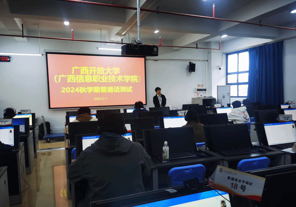 开放教育学院 覃伟情报道 为进一步推广和规范使用国家通用语言文字,提升师生普通话水平,我校于12月7日在五象校区知行楼605机房组织开展了普通话水平测试工作,共有934名教师和学生参加了测试。为做好师生的服务工作,学校教务处、开放教育学院精心部署,优化考试流程,规范考试程序,测试工作井然有序。