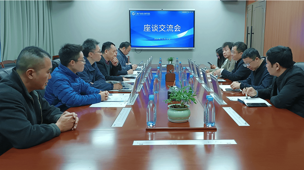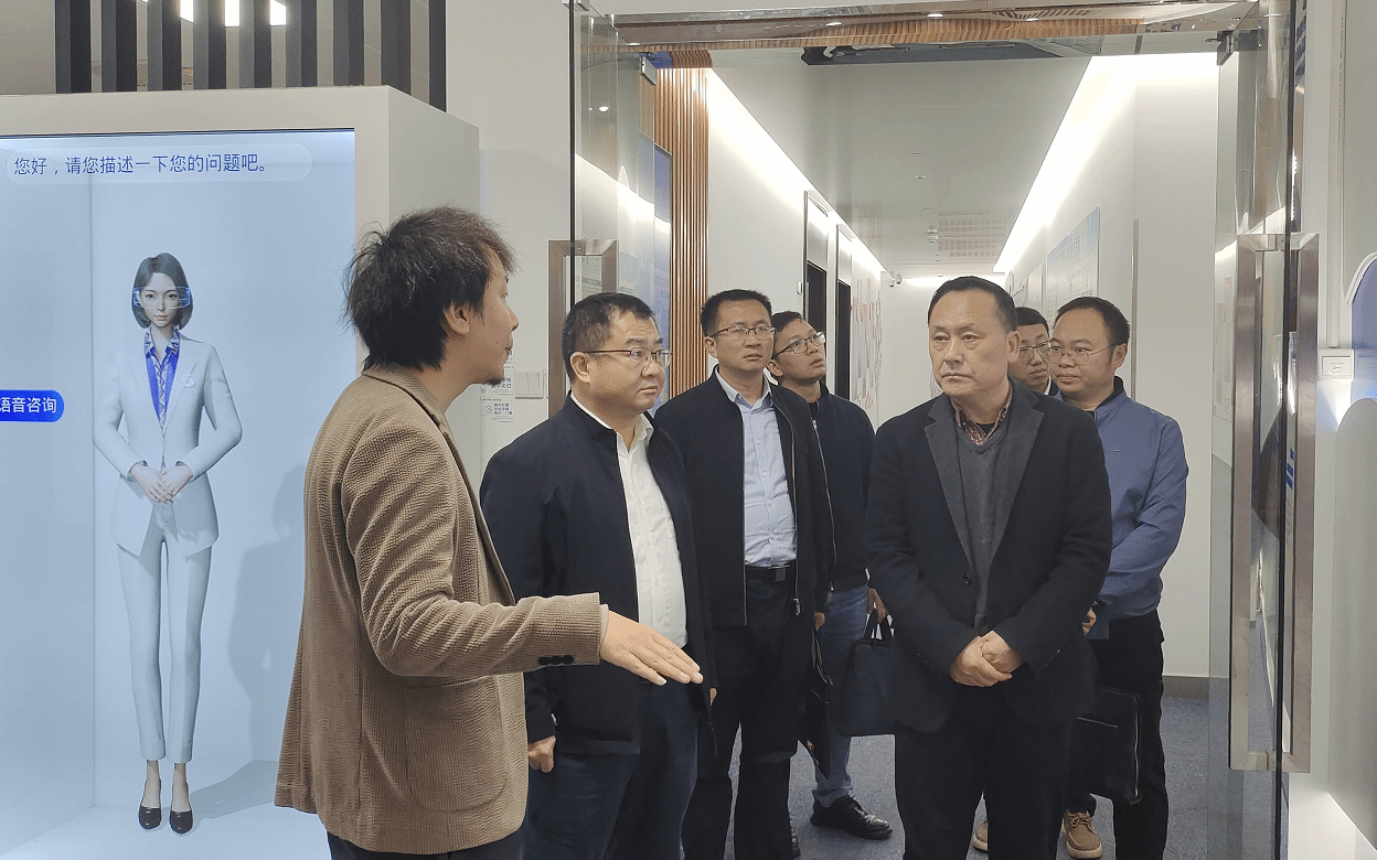 王兴辉一行参观了广西产业技术研究院的数字人虚拟展示区域和时空信息北斗应用研发环境,详细了解前沿技术的研发进程与应用实例。随后,与广西产业技术研究院副院长杜文宏携科技开发部部长助理李垚、数字虚拟所所长吴城、时空信息所所长助理刘乔风进行了座谈,双方围绕数字媒体创新应用在职业教育领域的拓展方向、人工智能应用赋能、北斗卫星导航系统前沿技术融入专业课程体系的路径等内容进行了深入探讨,聚焦于提升专业教学与产业实际契合度,谋划协同育人长效机制。