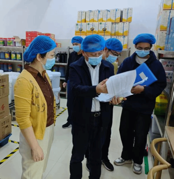王兴辉一行深入食堂后厨、仓库、烹饪区等关键场所,通过现场查看、随机询问、核验台账等方式,对食品供应、储藏、加工、清洗、消毒及从业人员健康状况进行细致检查,针对发现的问题,督促立即整改。