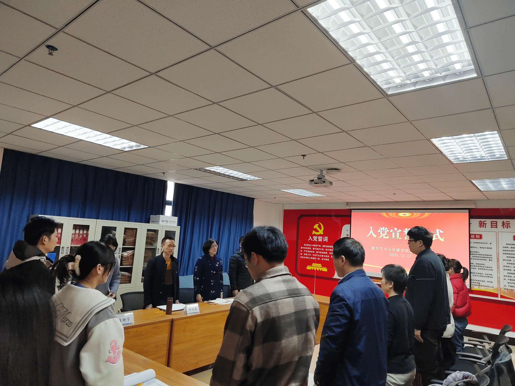 数字艺术与传媒学院 孟宗慧报道 2024年12月17日下午,数字艺术与传媒学院在鲁班楼304党建活动室分别举行了学生党支部和教师党支部的预备党员入党宣誓仪式。