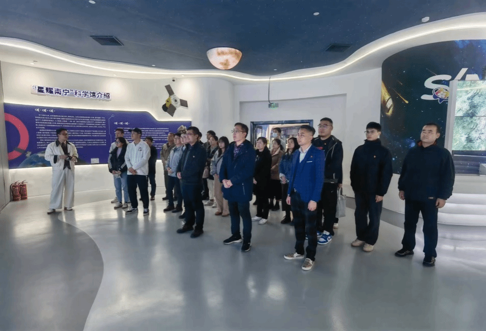 北斗与通信学院(智能制造学院) 王丹媛报道 近日,北斗与通信学院(智能制造学院)开展了主题为“追寻科学星火,牢记新时代北斗精神”的科普研学活动,学院全体教职工探访了富含高科技气息的“星耀南宁”科学馆的遥感馆和航天馆,通过科普讲解、实物模拟、视频观赏、知识竞赛、实验互动及沉浸式体验,大家全面回顾了中国航天事业的辉煌成就。