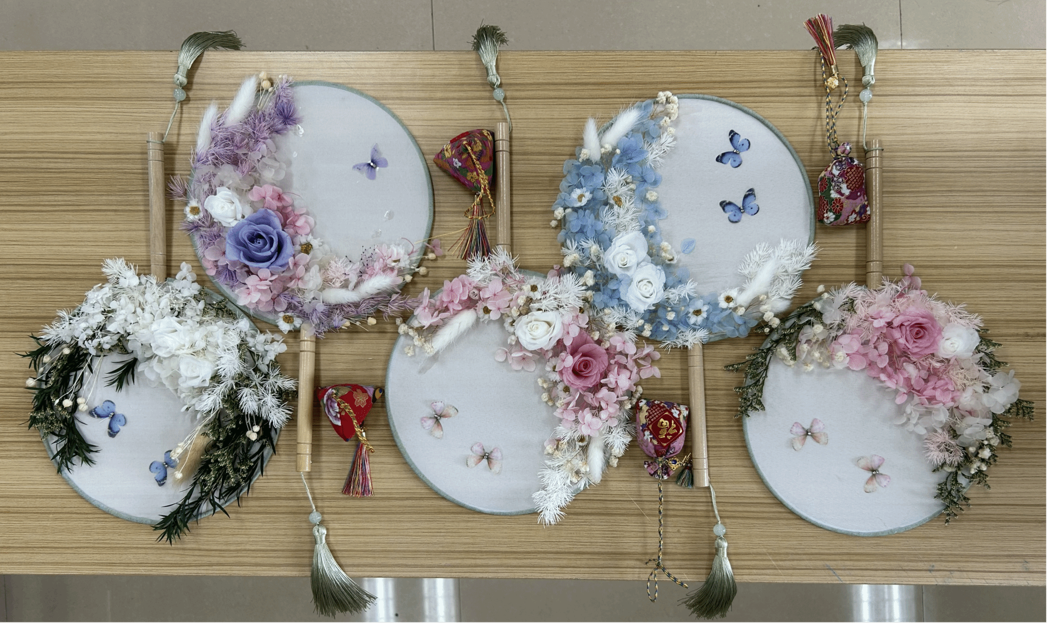 在手工制作环节,指导老师带领同学们制作艾草香包、永生花干团扇、创意竹编风铃挂件等特色工艺品,鼓励同学们要坚守匠心、大胆尝试。同学们轻挑慢缝,剪裁粘贴,精益求精享受手作的乐趣,获得轻松快乐的体验。
