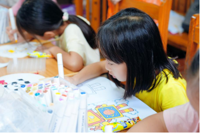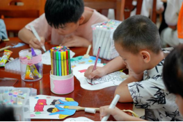 团扇,是悠久的中华传统文化之一,承载着独属于中华民族的浪漫情怀。宣讲结束后,活动进入趣味盎然的实践环节——手绘团扇。在促进团成员们的指导下,孩子们拿起画笔,在洁白的团扇上尽情挥洒创意,创作出“民族团结之花绽放扇面”“壮美广西风光入画来”“人工智能梦想跃然纸上”等作品,一把把小小的团扇瞬间化作承载着孩子们爱国情感与家乡自豪感的艺术品,把中华优秀传统文化和溢满扇面的殷殷爱国之情完美结合,在弘扬与传承中邂逅中国诗意的浪漫。