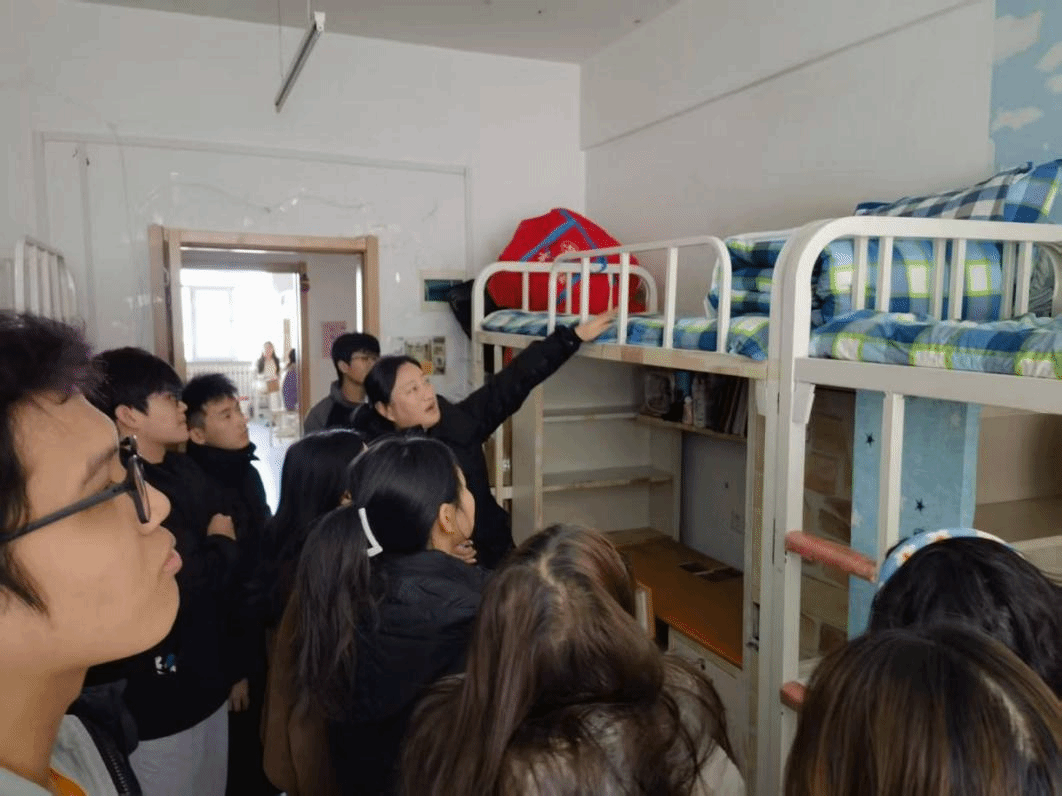 在哈尔滨职业技术大学学生公寓内,交换生们实地参观学习标准化宿舍管理模式。哈职大宿管科科长姜晓晶详细介绍了“标准化寝室建设”“安全保障机制”“自主管理委员会管理”等内容,从物品摆放规范到作息制度制定,从宿舍文化建设到文明宿舍评选,全方位展示了“养成好习惯,收获好人生”的宿舍管理理念。