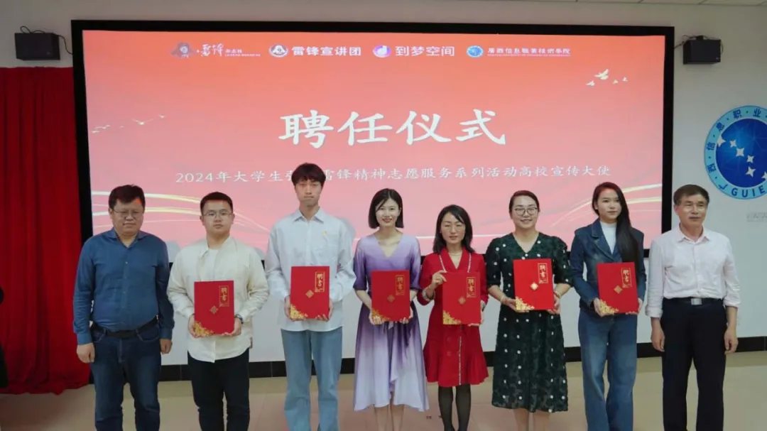 会上,还举行了2024年大学生弘扬雷锋精神志愿服务系列活动高校宣传大使聘任仪式,卜金宝主任为广西信息职业技术学院团委书记洪姣龙、广西农业职业技术大学团委书记陈莉萍、广西电力职业技术学院团委书记唐群、广西农业工程职业技术学院团委书记覃君勇、桂林生命与健康职业技术学院团委书记吴承乾、广西制造工程职业技术学院苏子贵颁发“高校宣传大使”聘书。