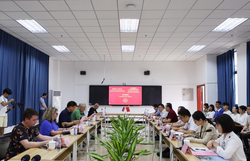 俄罗斯国立工艺美术大学博物馆馆长、家具艺术修复系教师,广西信息职业技术学院党院办、党委宣传部、数字艺术学院负责人及师生代表参加了座谈会。