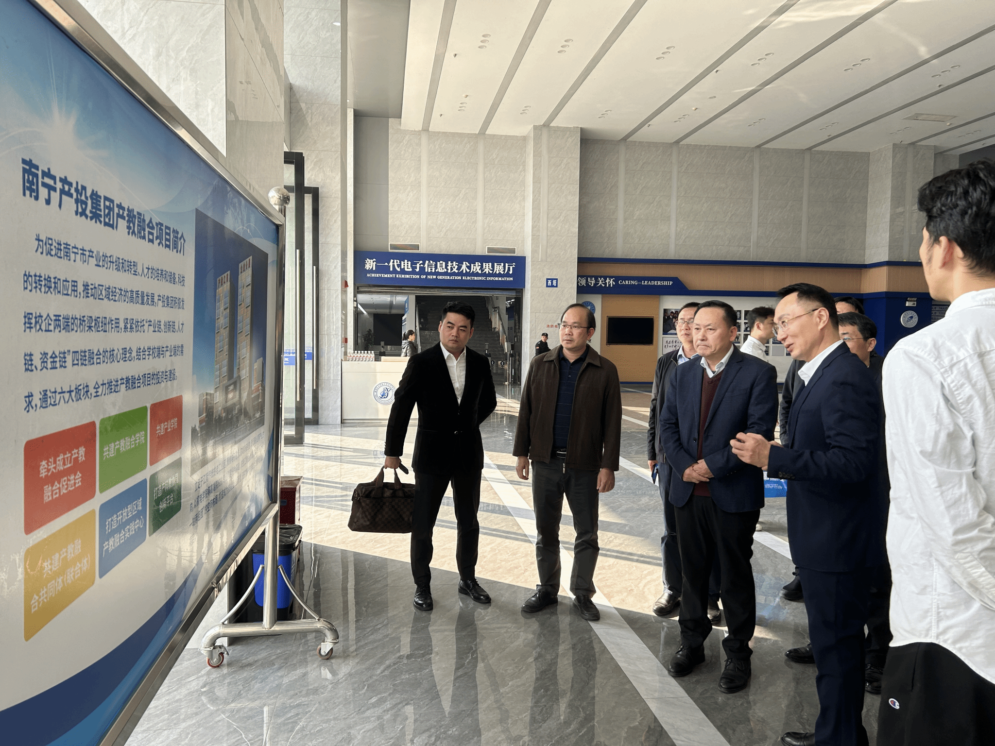 调研期间,王兴辉一行参观了南宁产投集团江南企业公园、江南产业园、江南电子科技园等园区,与相关企业负责人进行了座谈交流,深入了解企业的基本情况、发展规划以及产业融合等情况。双方就产教融合发展进行了深入探讨,表示将加强合作,共同培养高素质人才,推动科技创新和成果转化。