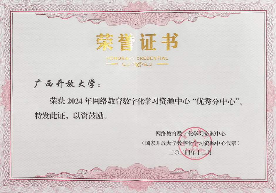 网络与信息中心 覃冬华报道 1月7日,国家开放大学在成都召开2024年网络教育数字化学习资源中心工作研讨会,会议对2024年度表现突出的分中心予以表彰。我校荣获2024年网络教育数字化学习资源中心“优秀分中心”称号,网络与信息中心主任韦劼群荣获网络教育数字化学习资源中心“先进工作者”称号。