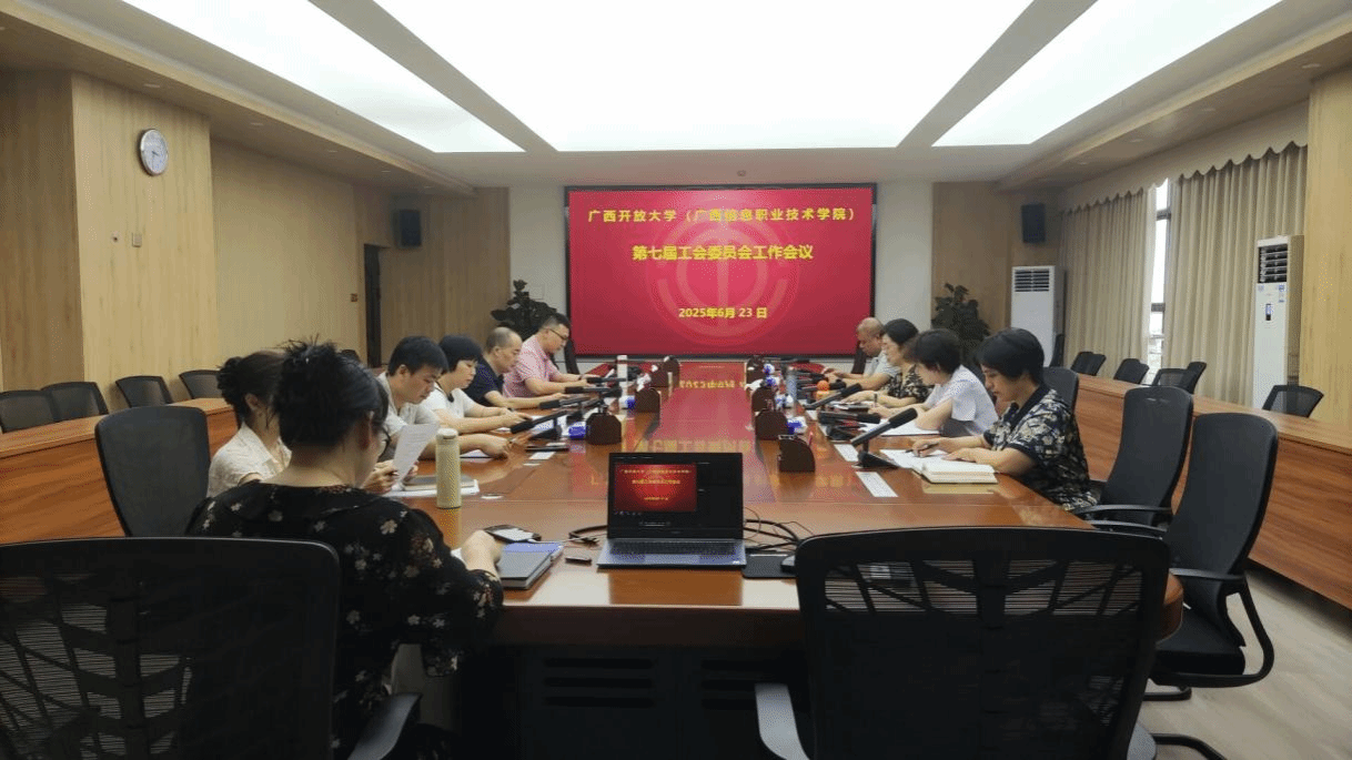 校工会 莫秋荣 报道 6月23日下午,学校第七届工会委员会2025年第一次会议在东宝校区召开,会议的主要内容是审定学校工会各项规章制度。副校长兼工会主席李敏智主持会议并作总结讲话,校工会委员会、工会经费审查委员会委员、福利工作委员会委员列席会议。