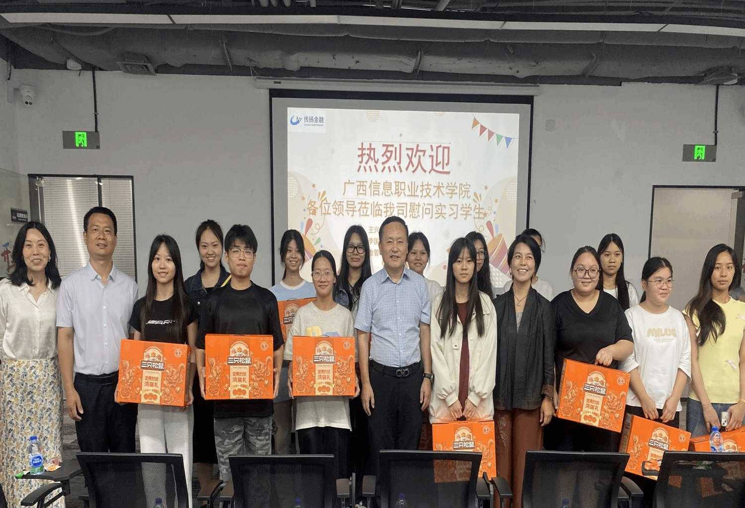数字经济与管理学院 温莹 报道 为深入掌握我校学生岗位实习情况,传达学校对全体实习学生的关怀,强化校企合作育人实效,8月18日,学校校长王兴辉一行赴传扬金融信息服务有限公司等企业实地看望慰问数字经济与管理学院实习学生,为学子们送上关怀与期许,并与企业负责人、实习学生及指导教师进行深入交流。广西信息职业技术学院副院长李国助参加看望活动并汇报实习工作情况。