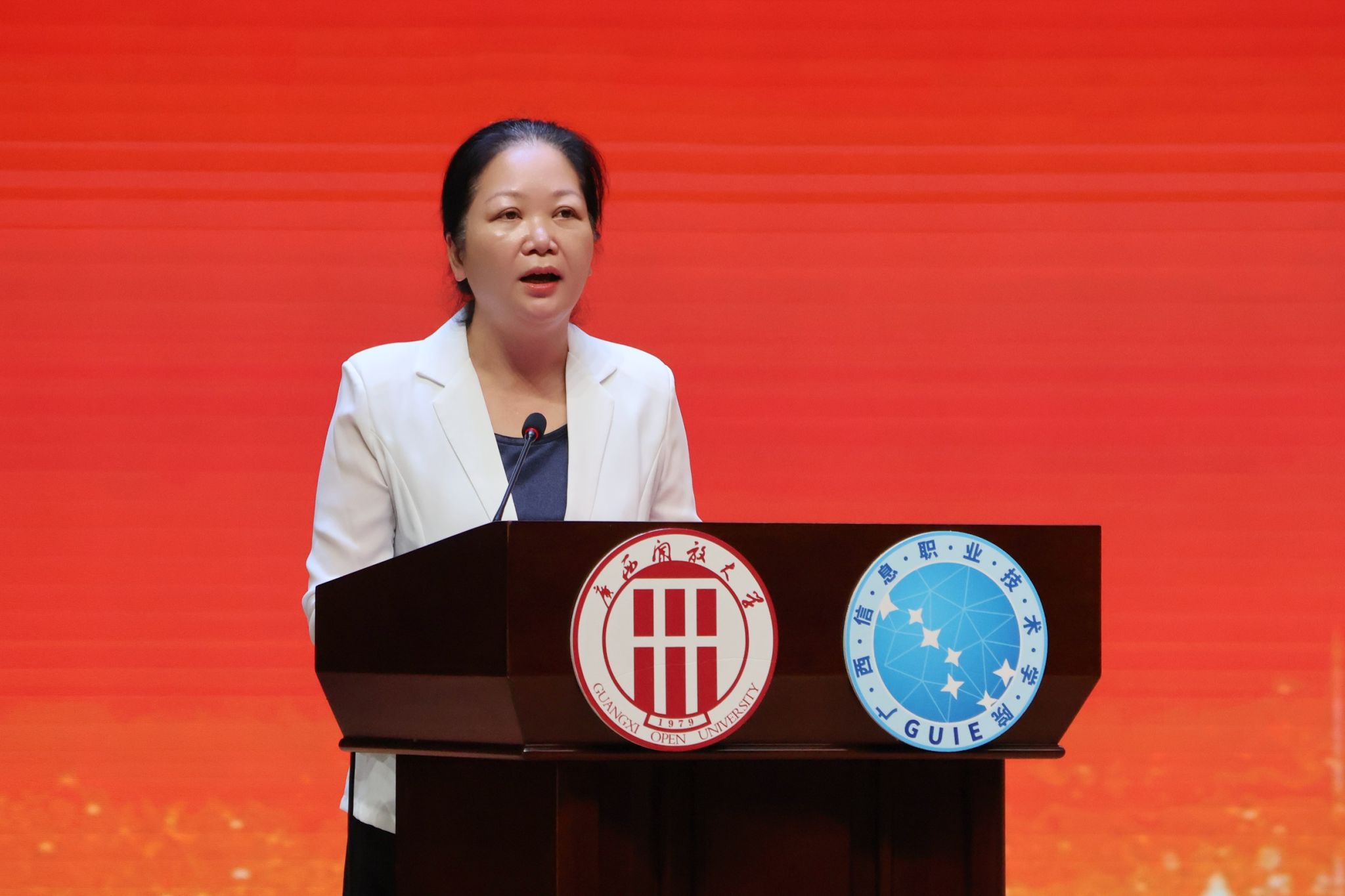 党委教师工作部、人事处 吴聃 报道 9月10日,广西开放大学体系在五象校区学生活动中心举行庆祝第41个教师节暨表彰大会,会议同时在各市开放大学设视频分会场。广西开放大学(广西信息职业技术学院)校领导王兴辉、龙雪津、李敏智、辛立章、黄远鸣等出席会议。广西开放大学体系全体教职工以“线上+线下”相结合的方式齐聚一堂,共同庆祝教师节。校长王兴辉讲话,党委副书记龙雪津宣读表彰奖励决定,副校长辛立章主持会议。