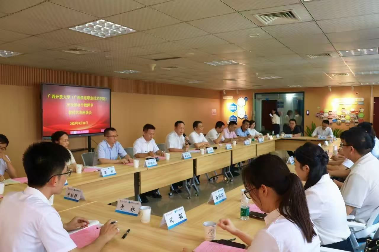 党委教师工作部、人事处 吴聃 报道 9月10日上午,学校以“以教育家精神铸魂强师 谱写教育强国建设华章”为主题,在五象校区“一站式”学生社区思政厅召开教师代表座谈会,学校校长王兴辉,副校长辛立章,副校长黄远鸣等学校领导出席会议,学校相关主要负责人以及教师代表参加座谈会。会议由副校长辛立章主持。
