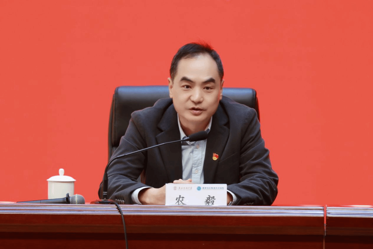 党委宣传部 黄杰瑶 报道 11月26日,学习贯彻党的二十届四中全会精神宣讲报告会在五象校区大学生活动中心举行。自治区纪委委员、自治区教育厅党组成员、自治区纪委监委驻自治区教育厅纪检监察组组长农毅作宣讲报告。学校党委副书记、校长王兴辉主持报告会。