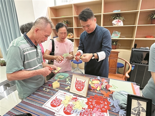 学员在现场体验剪纸课程。 南国早报记者 晏明珠摄