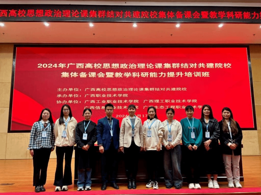 马克思主义学院 蒋婕报道 3月15日—17日,广西职业技术学院马克思主义学院举办了2024年广西高校思想政治理论课集群结对共建院校集体备课会暨教学科研能力提升培训班。我校马克思主义学院院长李铭带领9名思政课教师参加了本次集体备课会。