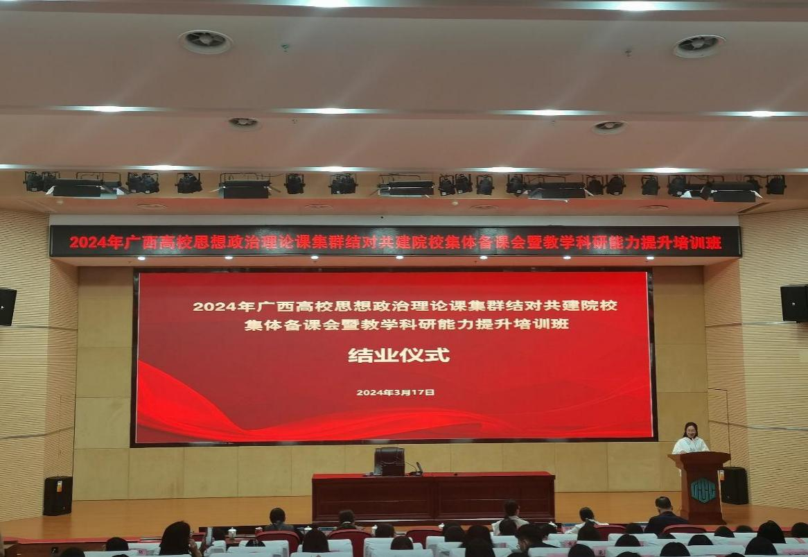 本次培训在热烈的氛围中顺利结束,我校与会教师纷纷表示收获满满、受益匪浅,不仅对解决自己在教学科研遇到的问题和困惑启发良多,也深刻感悟了新时代思政课教师的责任担当和努力方向。马克思主义学院将继续立足时代方位和广西区位,挖掘校本资源,凸显学校特色,研究和把握思想政治教育规律,充分发挥思政课主渠道作用,落实立德树人根本任务,助力因地制宜发展新质生产力,为学校高质量发展贡献力量。