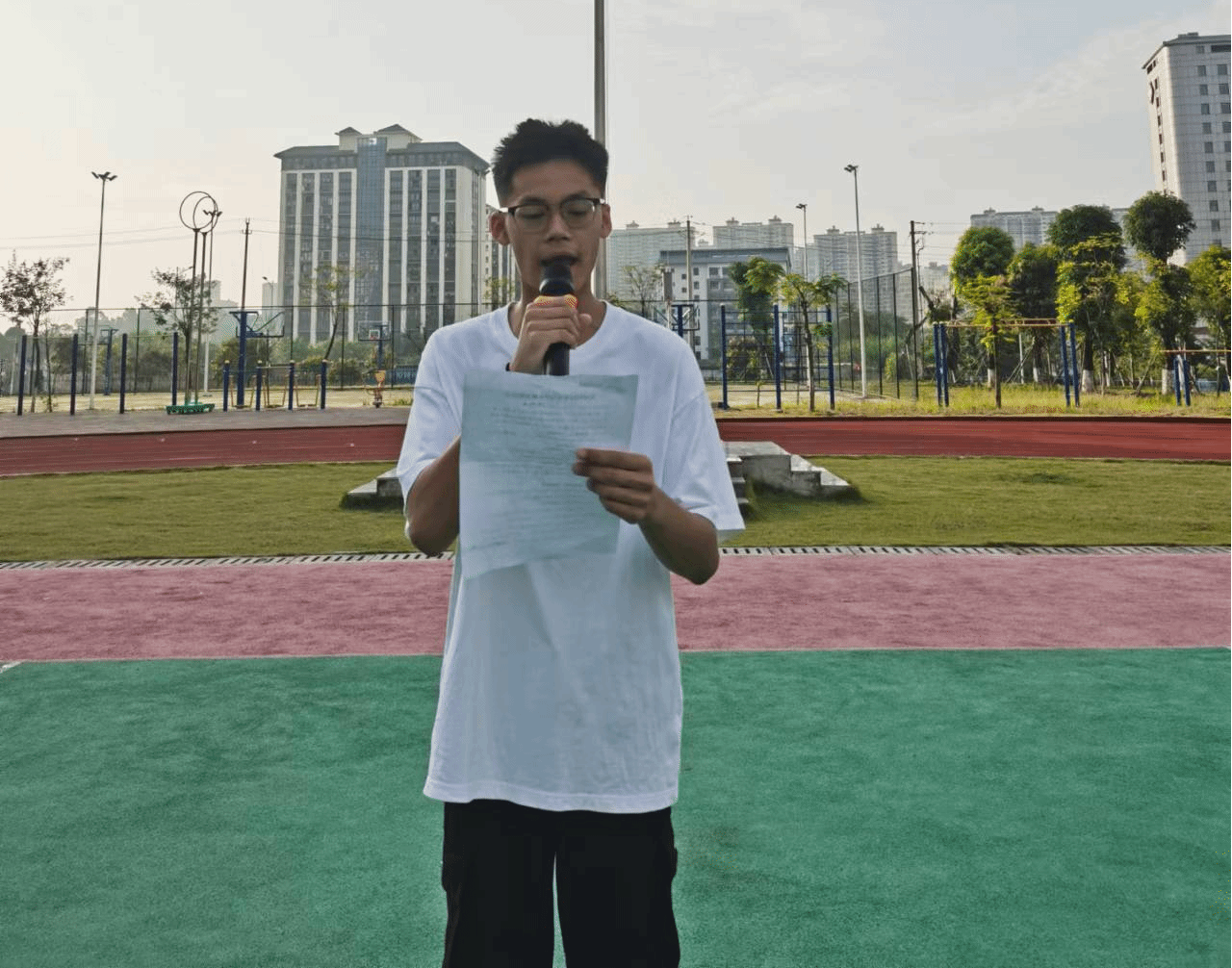 2024级影视动画2班同学梁仟兴代表全体学生宣读了《反对校园暴力与学生欺凌倡议书》,呼吁全校师生携手合作,共同抵制校园暴力与欺凌行为。2023-2024学年国家奖学金候选人李照燕宏分享了关于高效学习的心得体会,鼓励同学们跟她一起,在知识的海洋中乘风破浪,不断追求卓越。