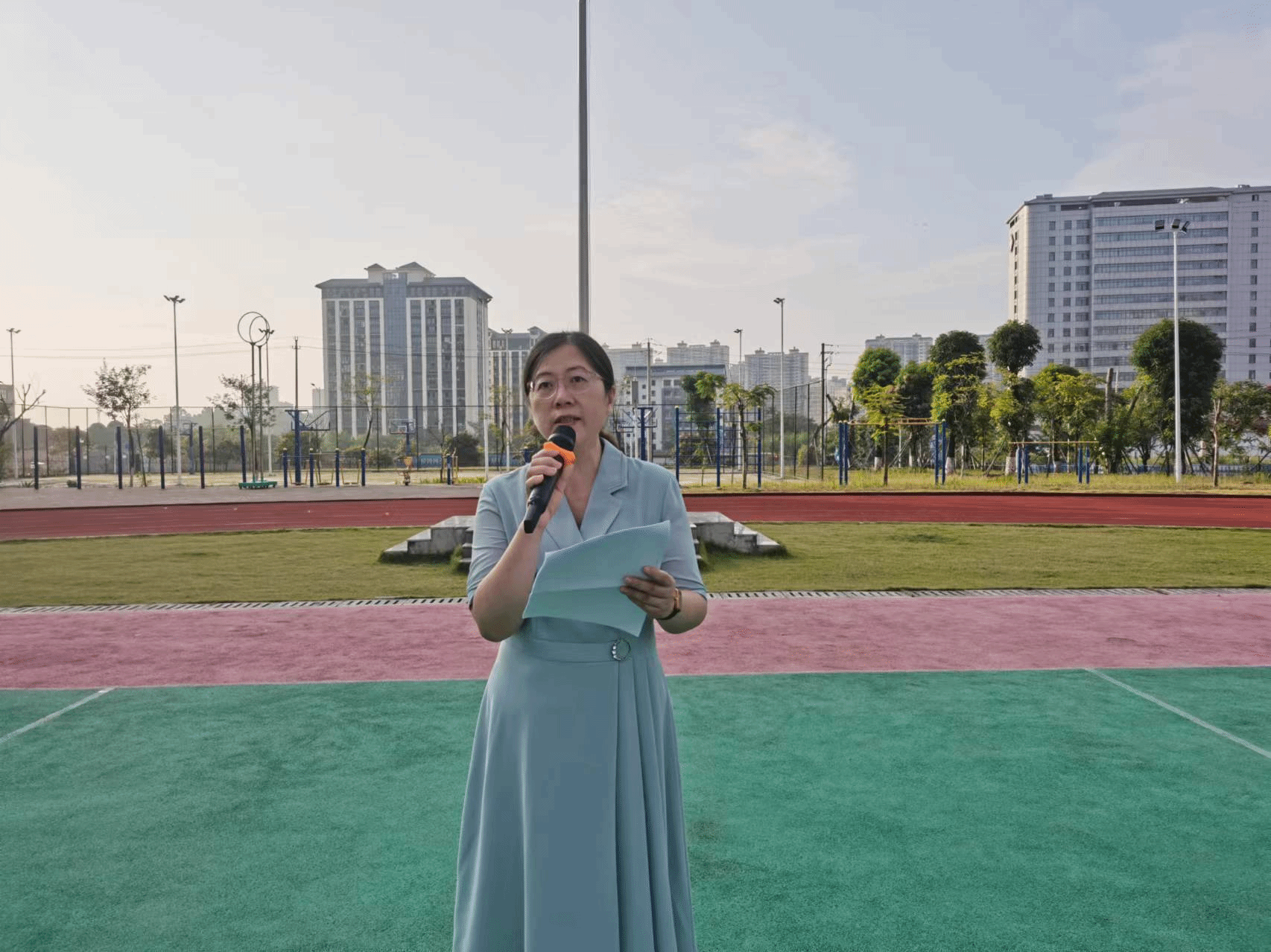 升国旗仪式后,数字艺术与传媒学院党总支书记麦旭讲授了题为《以青春之名,向祖国献礼》的思政课。麦旭勉励青年学子应该铭记历史,珍惜当下,更要展望未来,肩负起实现中华民族伟大复兴的历史使命,学好专业知识,让自己成为国家和社会的有用之才。