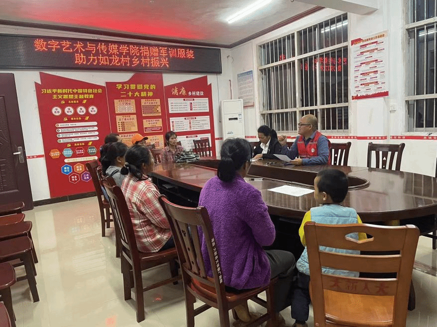 数字艺术与传媒学院 吴家媚报道 为了助力乡村建设,2024年11月22日下午,数字艺术与传媒学院组织了一场别开生面的军训服装捐赠活动,数艺学子积极响应,将自己在军训期间穿着的200余套军训服捐赠给了我校定点帮扶村恩城乡如龙村。