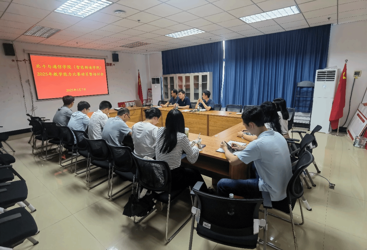 杨挚诚就“2025年北斗与通信学院(智能制造学院)教师教学能力比赛”作动员讲话。他指出,教学能力大赛是锤炼教师队伍、深化教学改革的重要平台,希望教师们高度重视,深入研究比赛规则,勇于突破,在竞赛中取得好成绩。