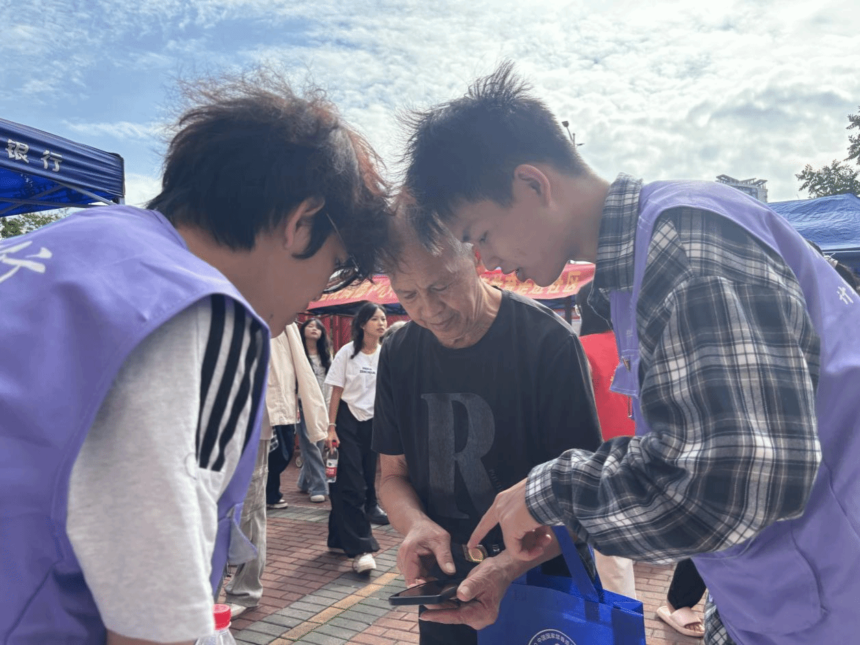 音乐表演结束后,“青丝系白发 助老传温情” 智能手机互动课堂正式开讲。考虑到老年人对智能手机操作不熟悉的痛点,学院师生志愿者们化身 “小老师”,采用 “一对一”“手把手” 的教学方式,耐心细致地为老人们讲解智能手机的基础操作。从连接 WiFi、使用微信视频通话,到线上挂号、调节字号大小,再到防范电信网络诈骗等实用知识,志愿者们用通俗易懂的语言和反复示范的动作,帮助老人们逐步掌握操作技巧。老人们学习热情高涨,不时提问交流,现场互动频繁,气氛热烈。