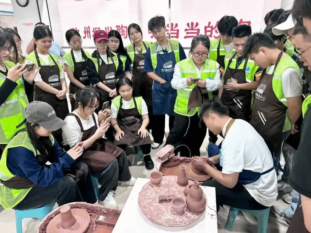 在坭兴陶艺师的指导下,同学们从揉泥拉坯到雕刻烧制,完整体验了坭兴陶制作全过程。最终完成的三十余件作品,涵盖茶具、摆件等品类,既保留了传统纹样韵味,又融入了独特的青春创意,展现了同学们对传统工艺的传承与创新。