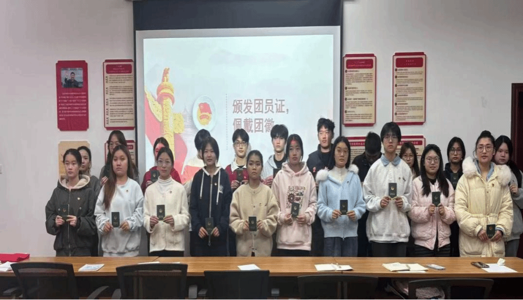 会上,学院为新团员颁发团员证、佩戴团徽。全体新团员面向团旗高举右拳庄严宣誓,铿锵誓言是对团组织的忠诚承诺与青春告白。