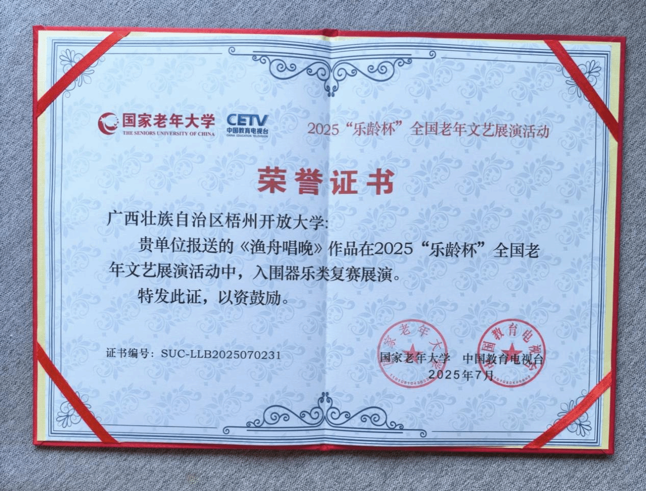 此次参赛不仅展现了学员个人的艺术素养,更是梧州开放大学坚持“老有所教、老有所学、老有所乐、老有所为”的老年教育理念的生动体现。学校将持续构建老年教育服务体系,支持更多银龄学习者实现自我价值、展示精神风采。