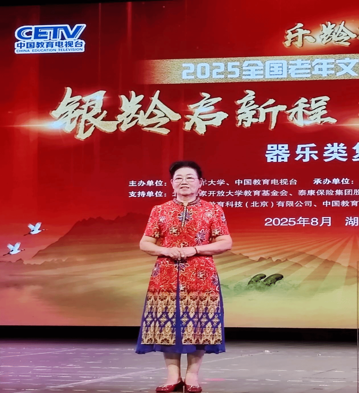 梧州开放大学 李锦惠 报道 近日,2025“乐龄杯”全国老年文艺展演声乐类、器乐类复赛在历史文化名城岳阳举办。梧州开放大学社区教育学员张秋玲以沉稳大气的台风和精彩的演奏,赢得评委一致好评,成功晋级全国复赛。