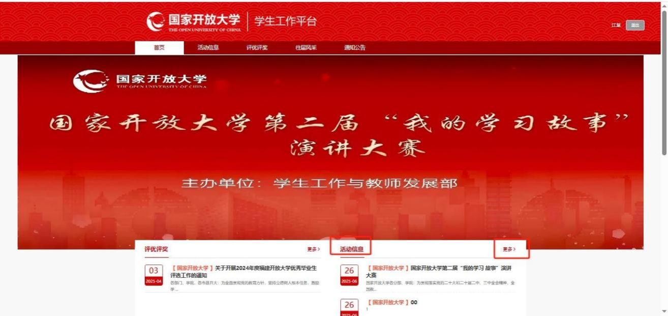 (二)选定活动:在首页【活动信息】板块找到参赛的活动。