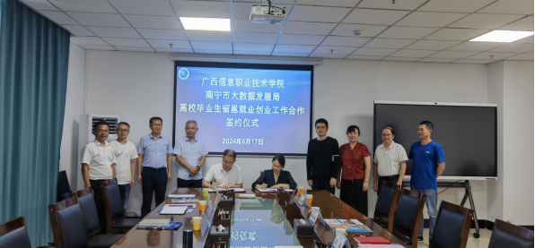 招生与就业处 报道  6月17日上午,我校与南宁市大数据发展局签订《南宁市与驻邕高校常态化对接联络服务共促高校毕业生留邕就业创业工作合作协议》。
