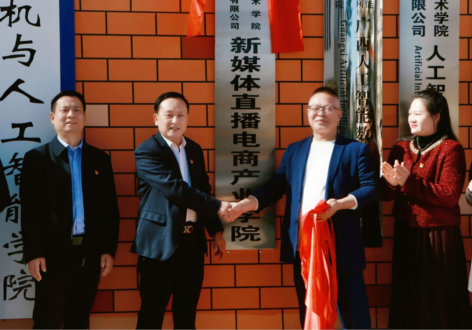 数字经济与管理学院 王茹 报道 11月26日上午,学校首个产业学院——新媒体直播电商产业学院在数字经济与管理学院挂牌成立。学校校长王兴辉,广西信息职业技术学院副院长李国助、邓明学,广西优途教育集团总经理王世政等共同出席揭牌仪式。