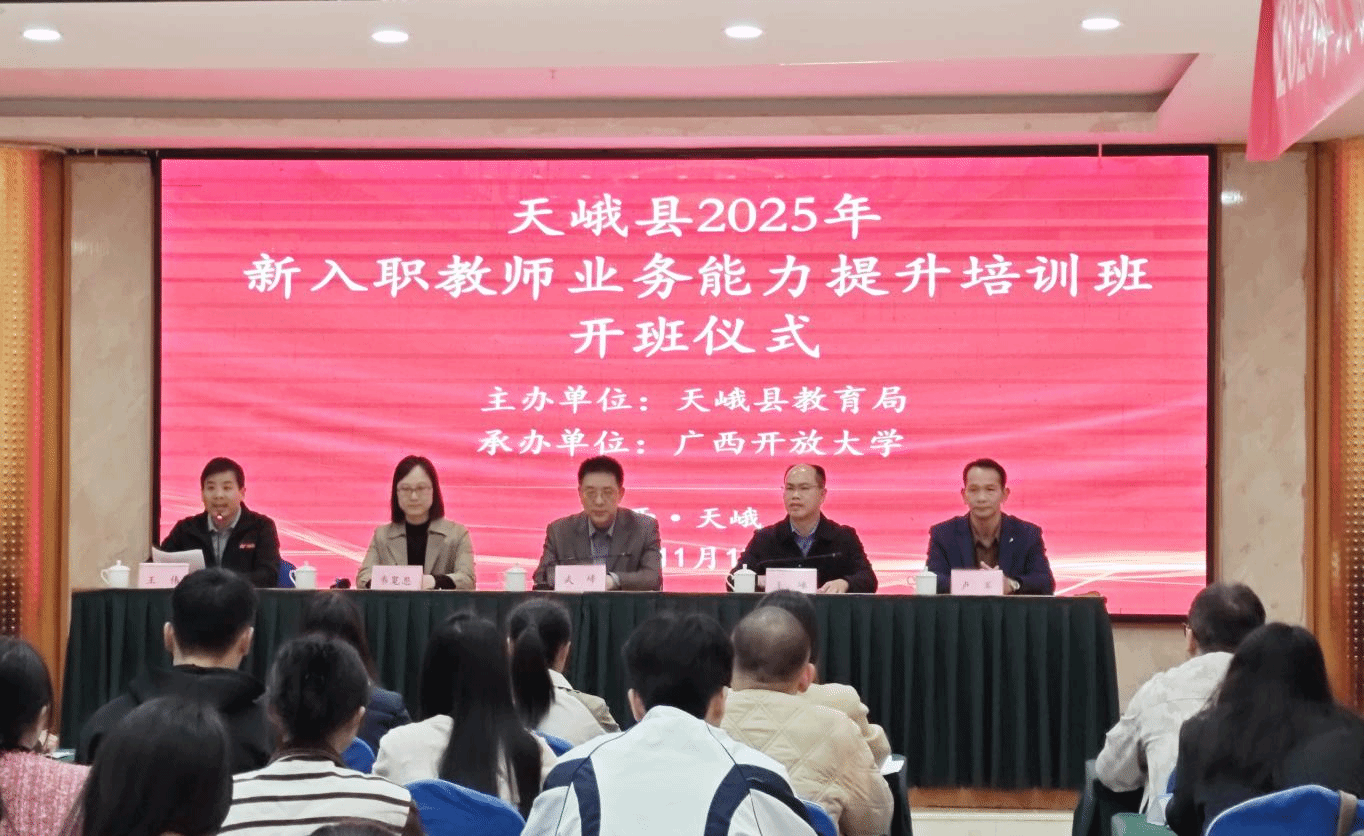 通识教育学院 王伟 报道 11月17日至19日,由天峨县教育局主办,我校承办的天峨县2025年新入职教师业务能力提升培训班在天峨县顺利举办,来自天峨县各中小学校93位新入职教师参加了此次培训。我校通识教育学院党总支书记武峰参加开班仪式致欢迎词,院长韦览恩带领新教师入职宣誓,天峨县教育党组成员王嵊参加开班仪式并作开班动员讲话。