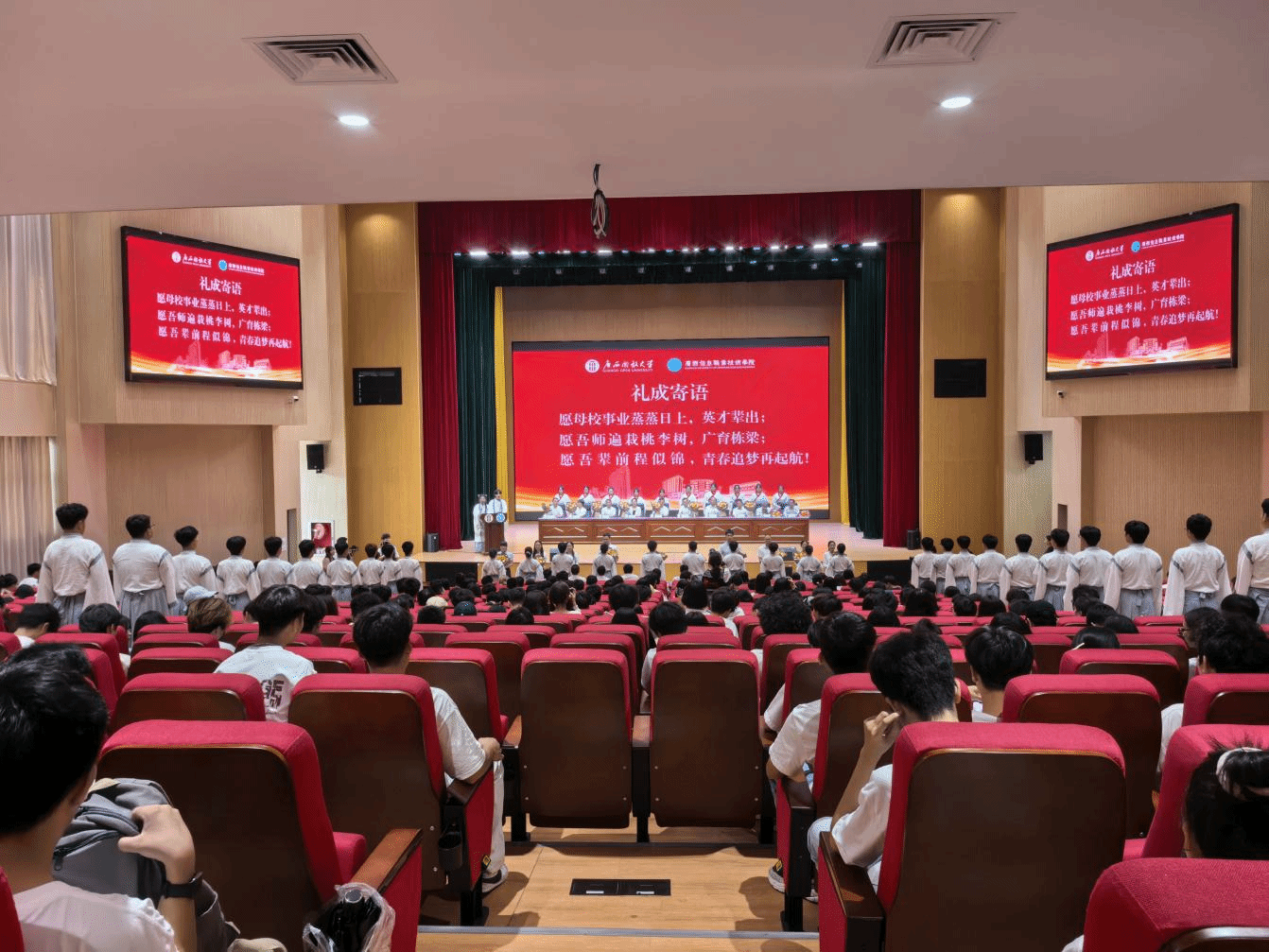 随后,一段精心制作的视频,以一帧帧珍贵画面,带领大家回顾了校园生活的点点滴滴:从初入校园时的懵懂青涩,到课堂上全神贯注听讲的模样,再到社团活动中活力满满的精彩瞬间,勾起了同学们满满的回忆。大屏幕上,学校领导发表的真挚寄语,鼓励毕业生们勇担时代责任,勇敢追逐梦想。老师和朝气蓬勃的学弟学妹们一同为毕业生们送上了“前程似锦、大展宏图”的温暖祝福……视频凝聚着全校师生对毕业生们的爱与期许,为他们的新征程注入力量。