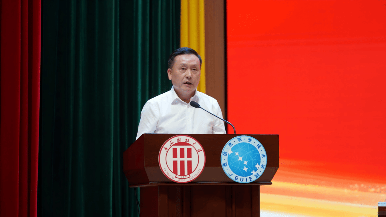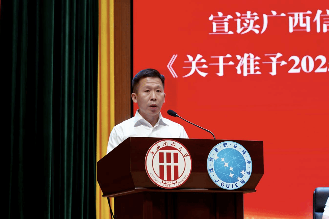 黄远鸣宣读《广西信息职业技术学院关于准予2025届学生毕业的决定》,决定指出,对3093名2025届学生授予毕业证书。