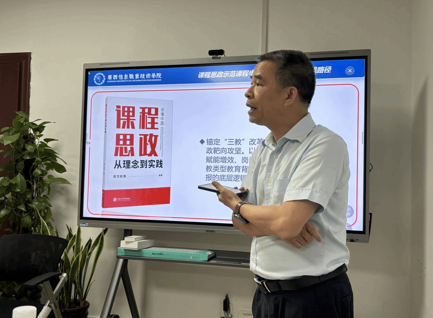 “职业素养与商务礼仪”和“应用数学”两门课程的负责人对各自课程思政的整体设计进行了汇报。江颉作点评。他深入剖析了申报书中的亮点和不足,以“职业素养与商务礼仪”课程为例,建议在撰写申报书时,教师要反复研读相关文件,精准把握政策导向和要求。同时,要对标评价标准,从教学目标、教学内容、教学方法、教学评价等多个维度,深入挖掘课程中的思政元素,确保思政教育与专业教育有机融合。在规范填写申报材料方面,他指出,教学团队建设要强调“双师型+思政导师”组合,教学设计需体现思政元素与课程内容的有机嵌入,教学实施计划应细化教学方法、资源整合与过程管理,以充分展示课程思政落地的可行性;课程评价与成效建议用权威数据、身边案例支撑教学成果,强化示范辐射效应。